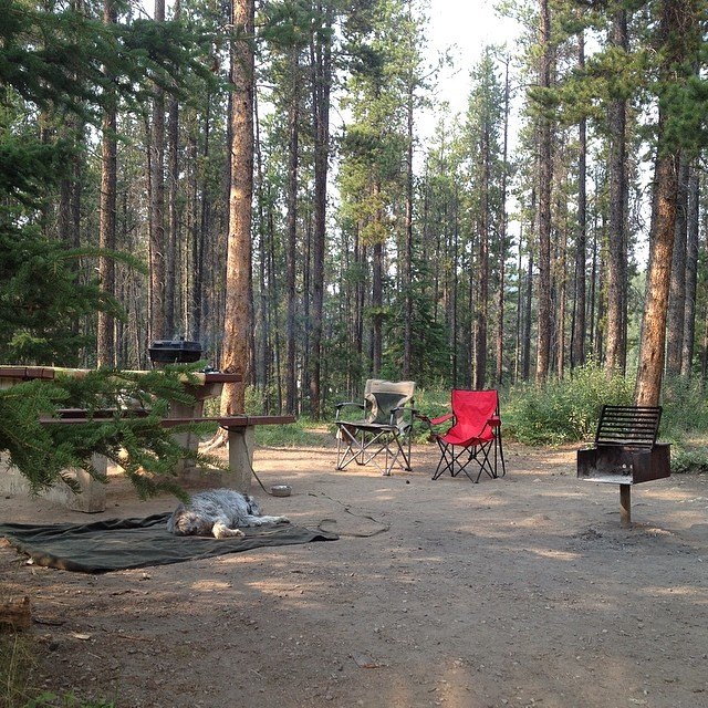 Image of the campsite (with our old dog, Max) from July 2014