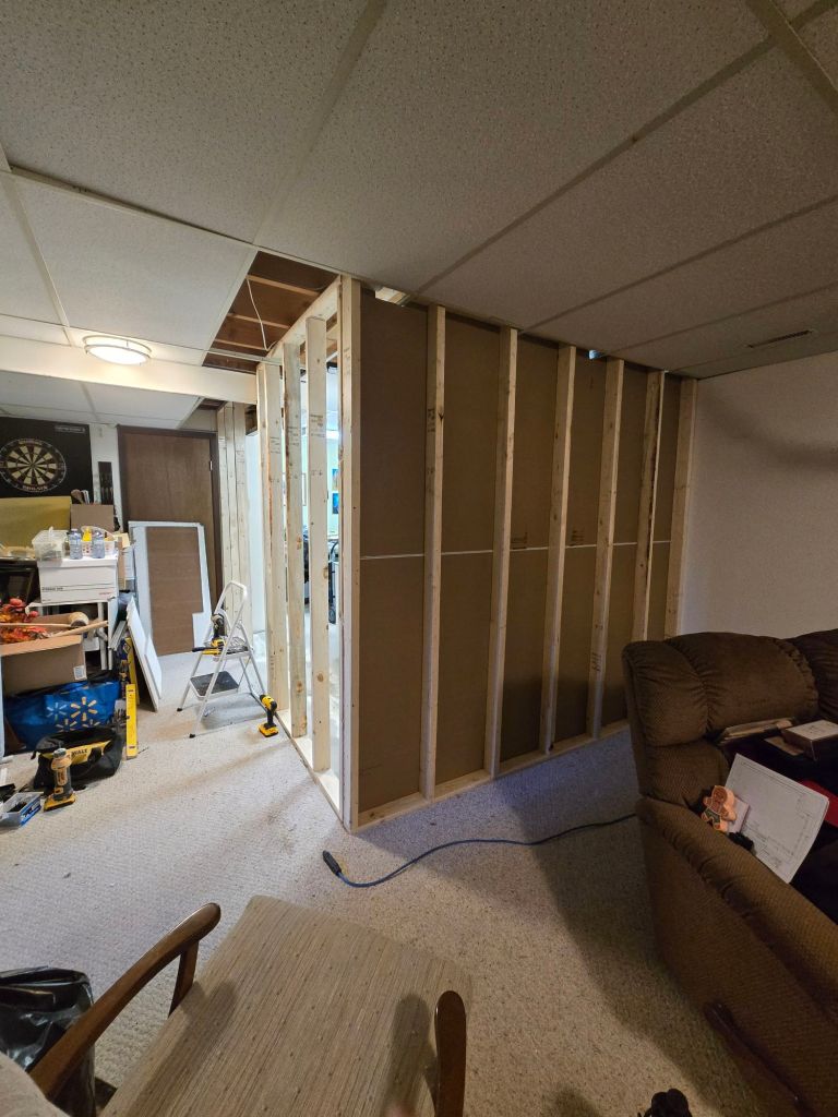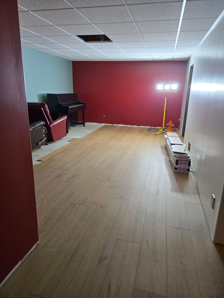 While the space isn’t ready to show off, I’d like to share the construction of the space. I’m immensely proud of the job done. The space, overall, looks absolutely stunning, and once it is completely finished, we will photograph it and I will write a new post about it. Short of our bathroom, I don’t think I’ve ever created a more beautiful space. This one is so lovely, I’m going to send photos back to the flooring & ceiling tile company, as well as the electrician who did the work. I believe it is that well curated they should have photos of it!