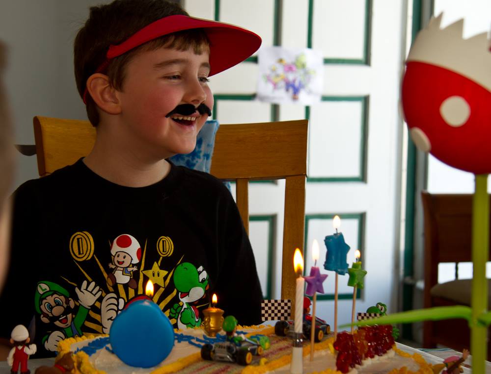 I think my favourite was the Super Mario party – from the invites (which were a motion invite – they slid up (via a plastic bag insert) to reveal a “level up” birthday surprise, to the Piranha plant decor & the “King Boo” balloons hanging from the ceilings. A bunch of little kids running around with fake mustaches, making wildly outlandishes pizzas, and the smile on my son’s face. He has loved all his parties – but that one fell at the time when his favourite game, his favourite things, was his Wii U and Super Mario.